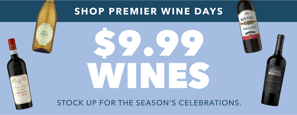 The wine event of the year is here — Premier Wine Days! Enjoy a wide selection of delicious premium wines from the world’s best wine regions — just $9.99/bottle.